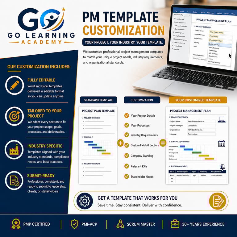Take one of our professional PM templates and have it customized for your specific project, industry, or organizational requirements. Starting at: $75 Delivery: 2-3 days