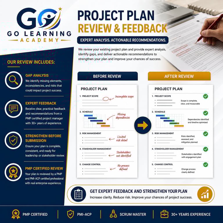 Have an existing project plan reviewed by an experienced certified PM. Get expert feedback, gap analysis, and specific recommendations to strengthen your plan before submission. Starting at: $75 Delivery: 2-3 days